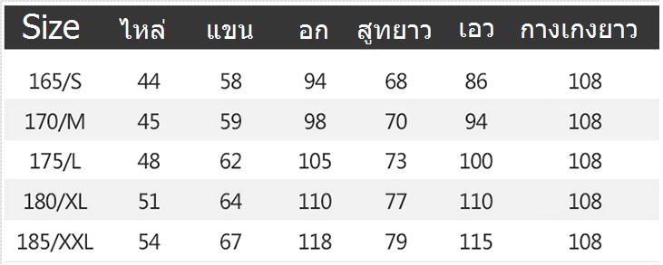 ไซส์+วิธีวัดตัว สูทและกางเกง ตามตารางที่แจ้งด้านล่างนะคะ